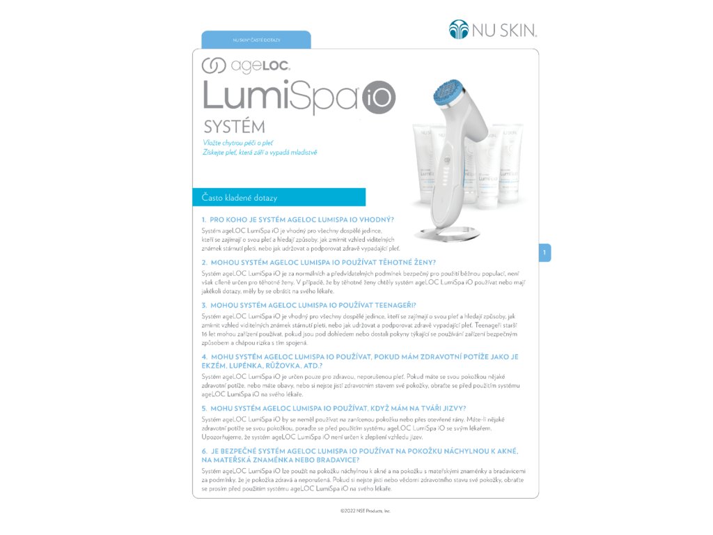 1Klinické studie provedené se systémem ageLOC LumiSpa. Výsledky a účinnost lze extrapolovat na systém ageLOC LumiSpa iO.
